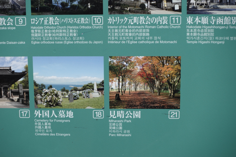 東駐車場には函館の観光スポットがあり、その中に香雪園も紹介されております